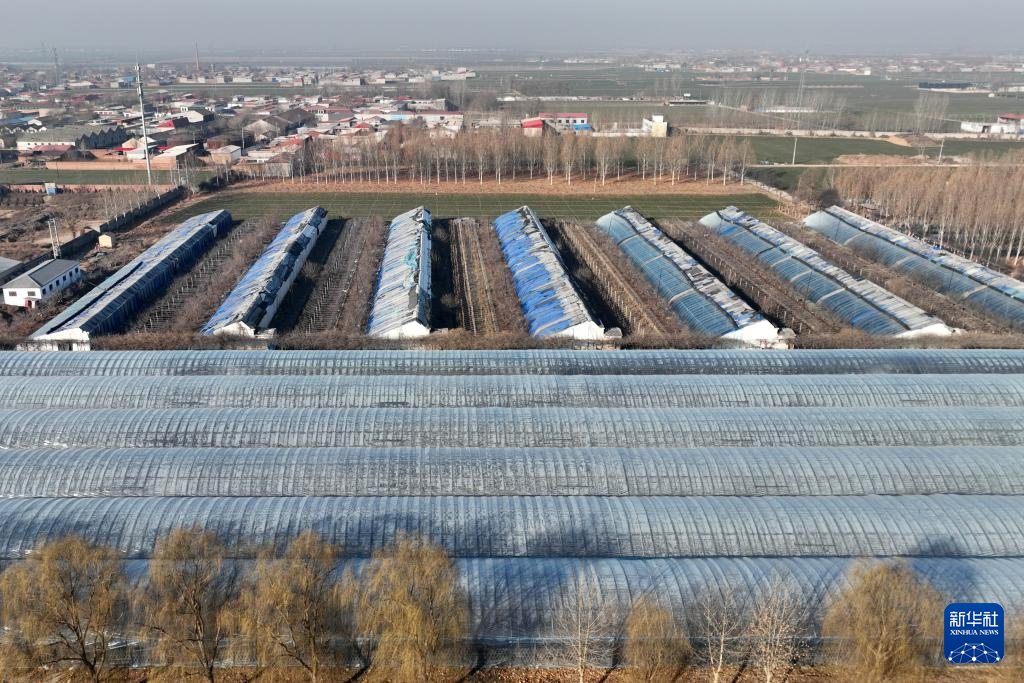 这是河北省柏乡县汉牡丹种植大棚(1月26日摄,无人机照片)。