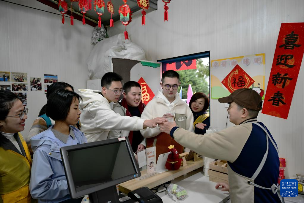 1月26日,在福州市第二社会福利院“星小蜗”创业就业咖啡店,青年志愿者准备品尝花茶。