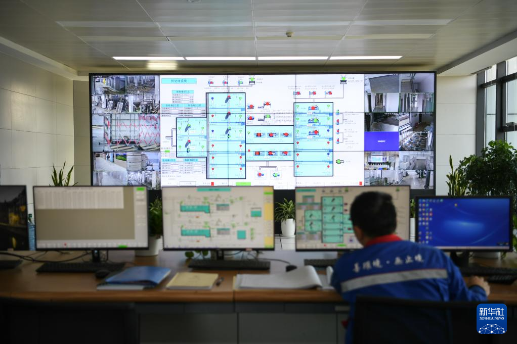 1月26日,在成都天府国际生物城再生水厂中控室,工作人员观察水厂系统运行情况