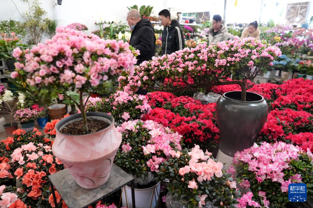 1月27日,在河北石家庄市肖家营花卉市场,人们选购鲜花。