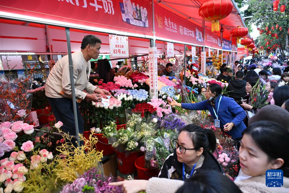 1月27日,市民在广州越秀西湖花市选购鲜花。
