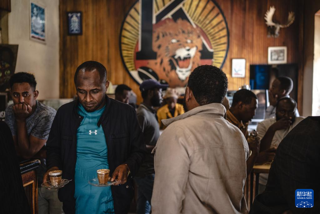 在埃塞俄比亚首都亚的斯亚贝巴,市民来到位于老城区的Tomoca咖啡店内喝咖啡(1月8日摄)。该咖啡店于1953年开门营业,已有近72年历史。新华社记者 王冠森 摄pagebreak