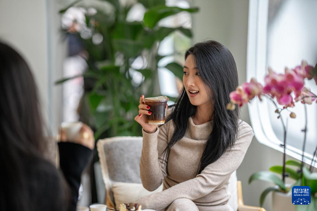 一名女士在云南省普洱市思茅区一家咖啡馆喝咖啡(1月9日摄)。新华社记者 胡超 摄pagebreak