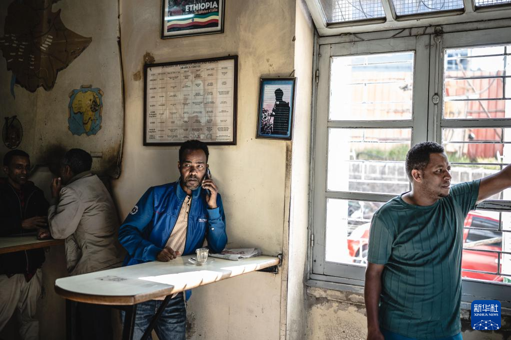 市民在埃塞俄比亚首都亚的斯亚贝巴一处街边咖啡店喝咖啡(1月8日摄)。新华社记者 王冠森 摄pagebreak