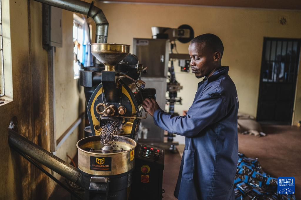 工人在肯尼亚基里尼亚加郡一家咖啡加工厂内烘烤咖啡豆(2024年12月18日摄)。新华社记者 王冠森 摄pagebreak