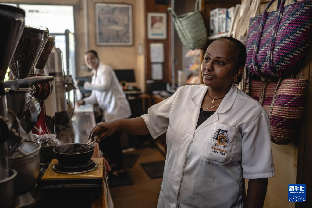 工作人员在埃塞俄比亚首都亚的斯亚贝巴老城区的Tomoca咖啡店内烘焙咖啡豆(1月8日摄)。该咖啡店于1953年开门营业,已有近72年历史。新华社记者 王冠森 摄pagebreak
