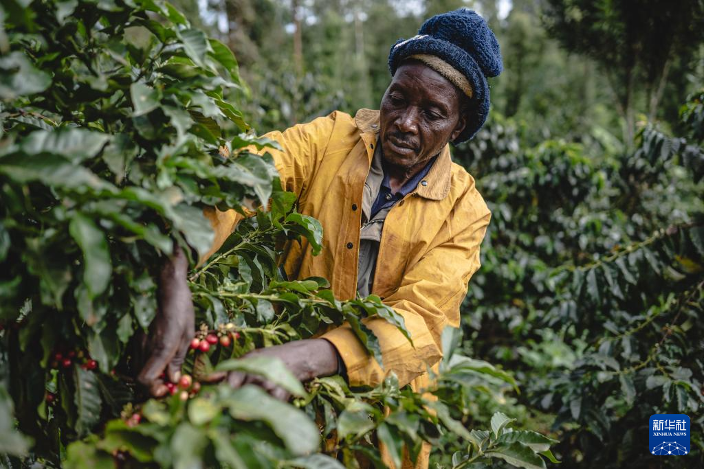 咖农在肯尼亚基里尼亚加郡一家农场内采摘咖啡果(2024年12月20日摄)。新华社记者 王冠森 摄pagebreak