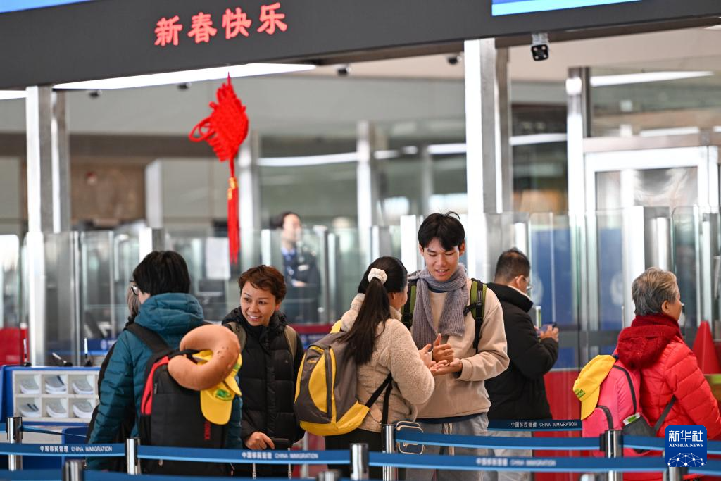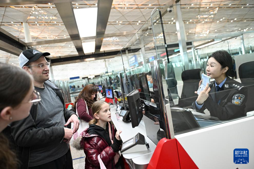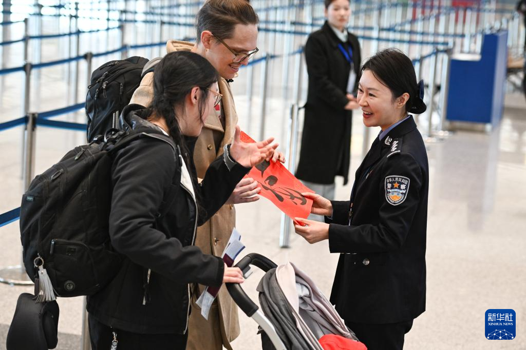 除夕,在北京首都国际机场,边检民警的入境章盖章声此起彼伏。一些海外游子回到祖国,欢度春节;外国游客经此来到中国,感受中国年味儿。