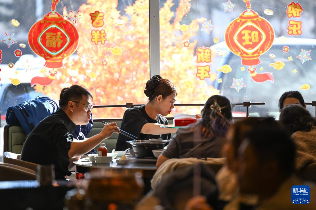 1月28日,市民在内蒙古呼和浩特市赛罕区一家饭店用餐。