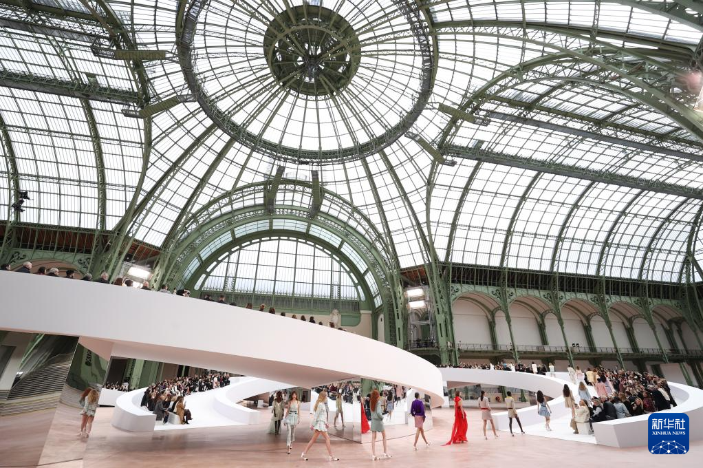 1月28日,模特在法国巴黎高级定制周上展示法国品牌香奈儿2025春夏新品。