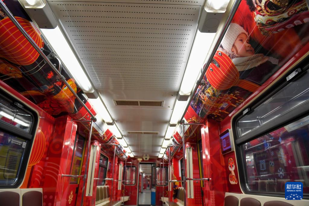 这是1月29日在俄罗斯首都莫斯科拍摄的春节主题地铁列车车厢内部。