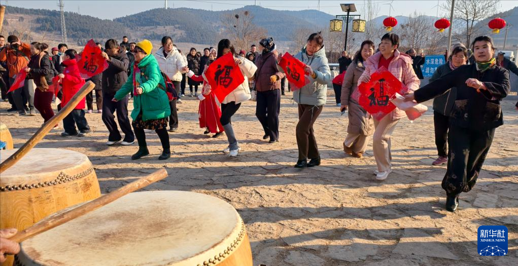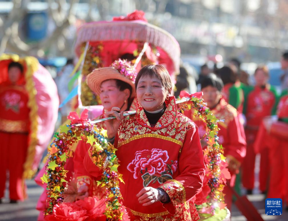 1月29日,山东省济南市长清区孝里街道方峪村村民在扭秧歌。