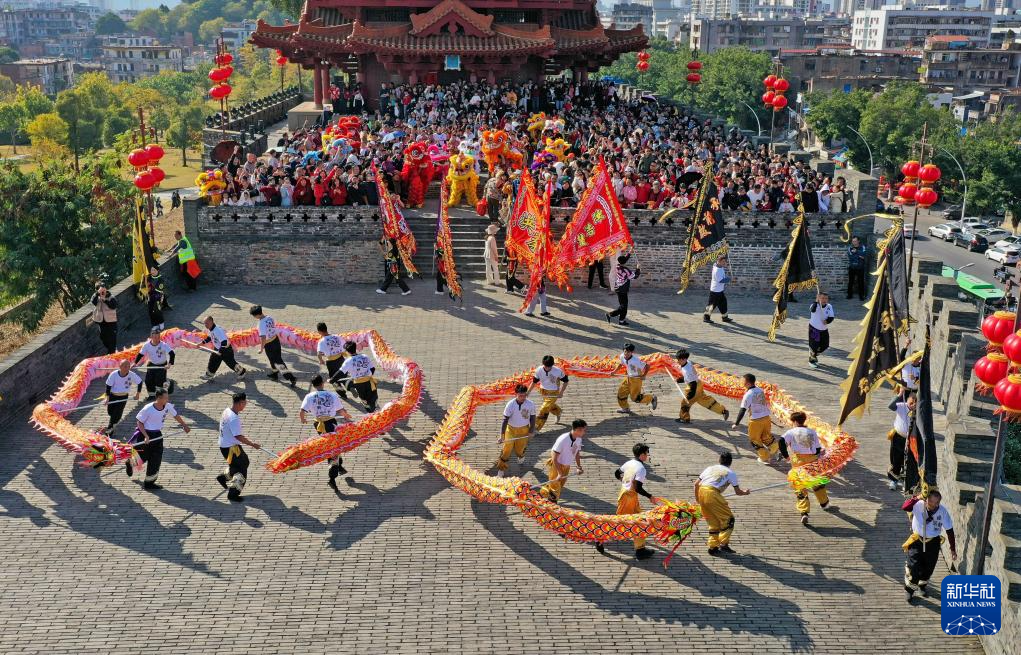 1月29日,人们在广东省肇庆市参加新春民俗活动(无人机照片)。