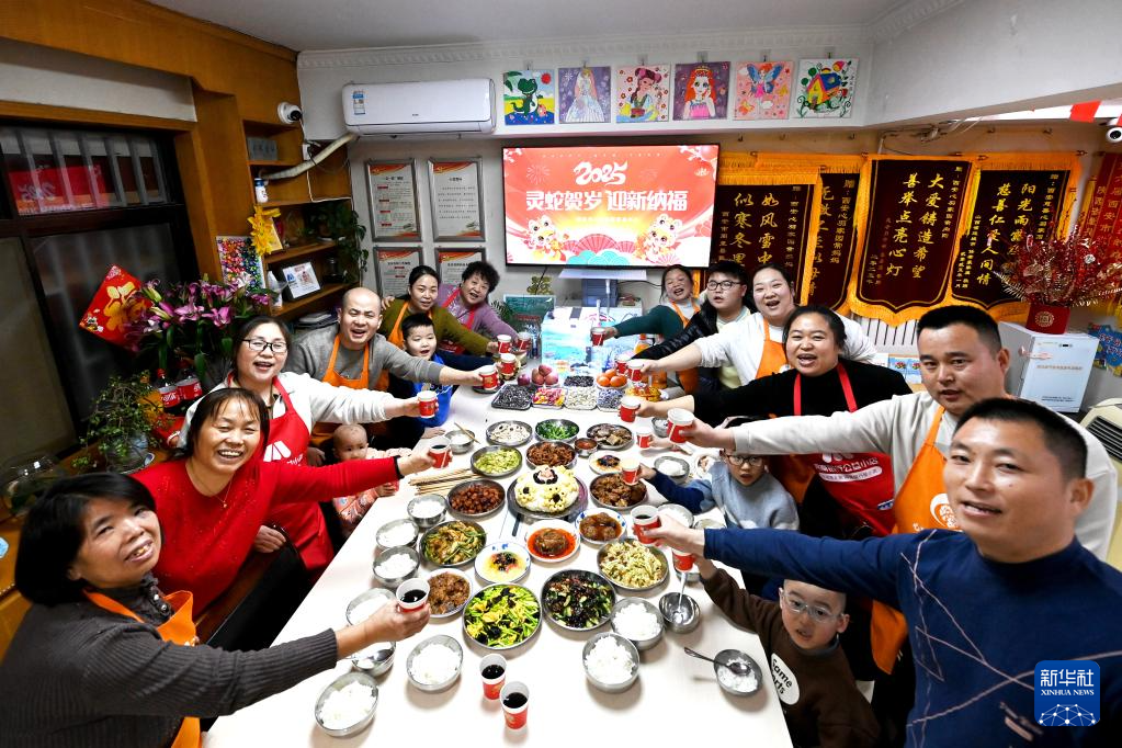 1月28日,常向阳与患儿家长一起把年夜饭端上桌。
