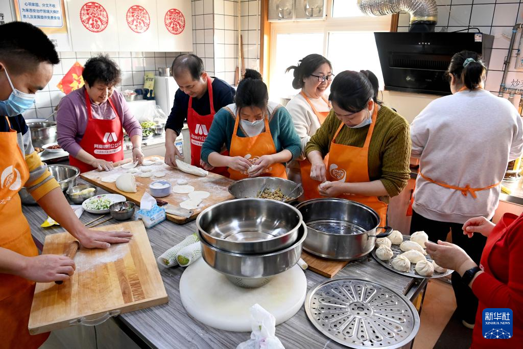 1月28日,常向阳(左二)在“心羽家园”与患儿家长一起做年夜饭。
