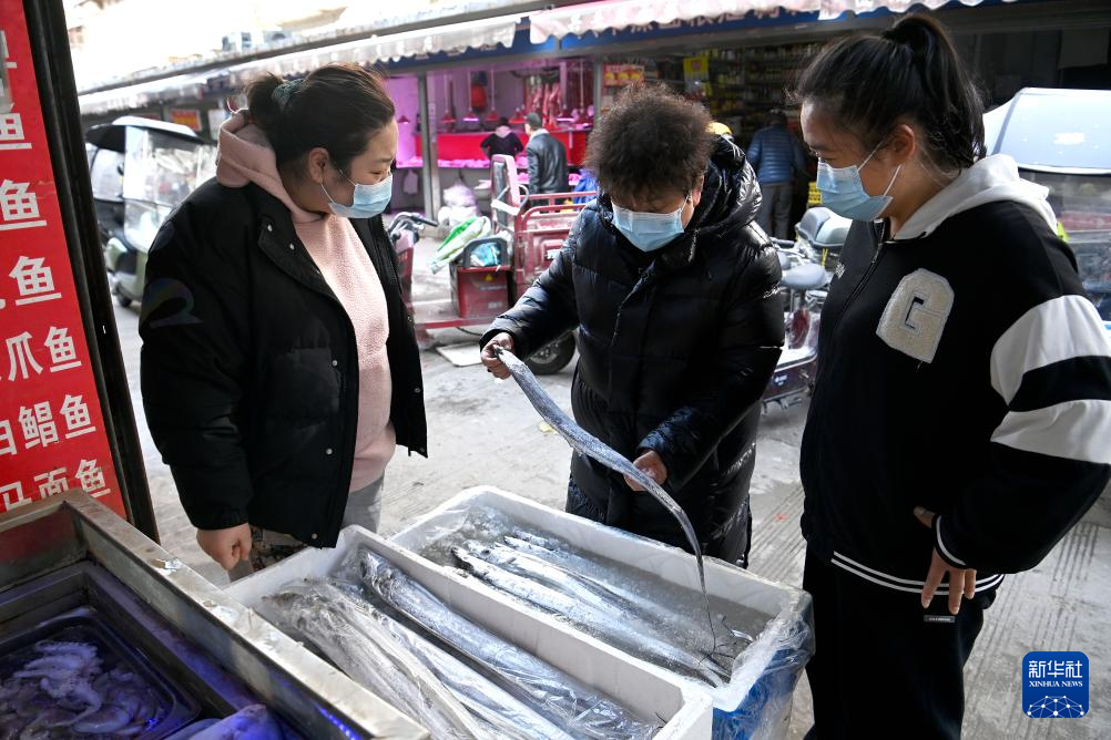 1月26日,常向阳(中)和患儿家长在附近的菜市场为年夜饭选购食材。