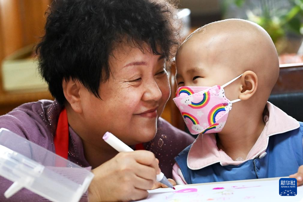 1月26日,常向阳(左)通过视频电话与在医院治疗的小朋友聊天。