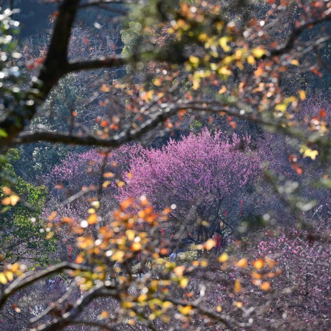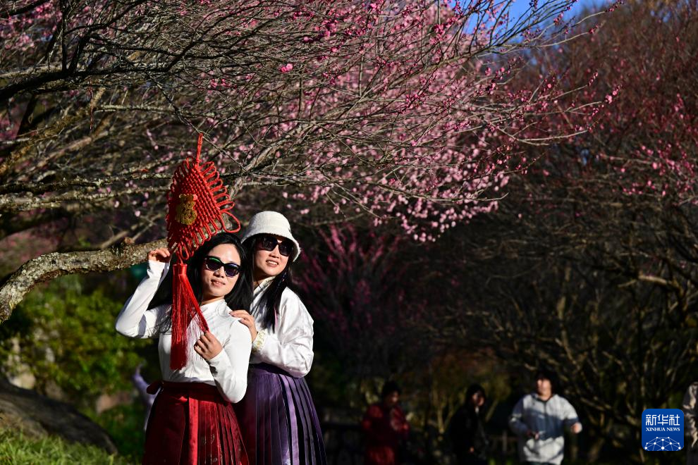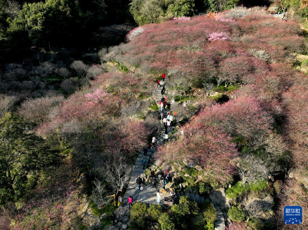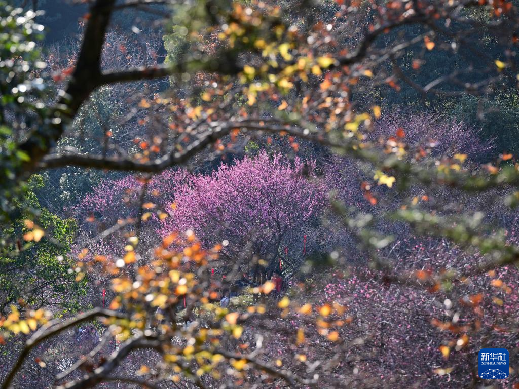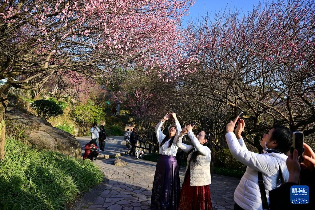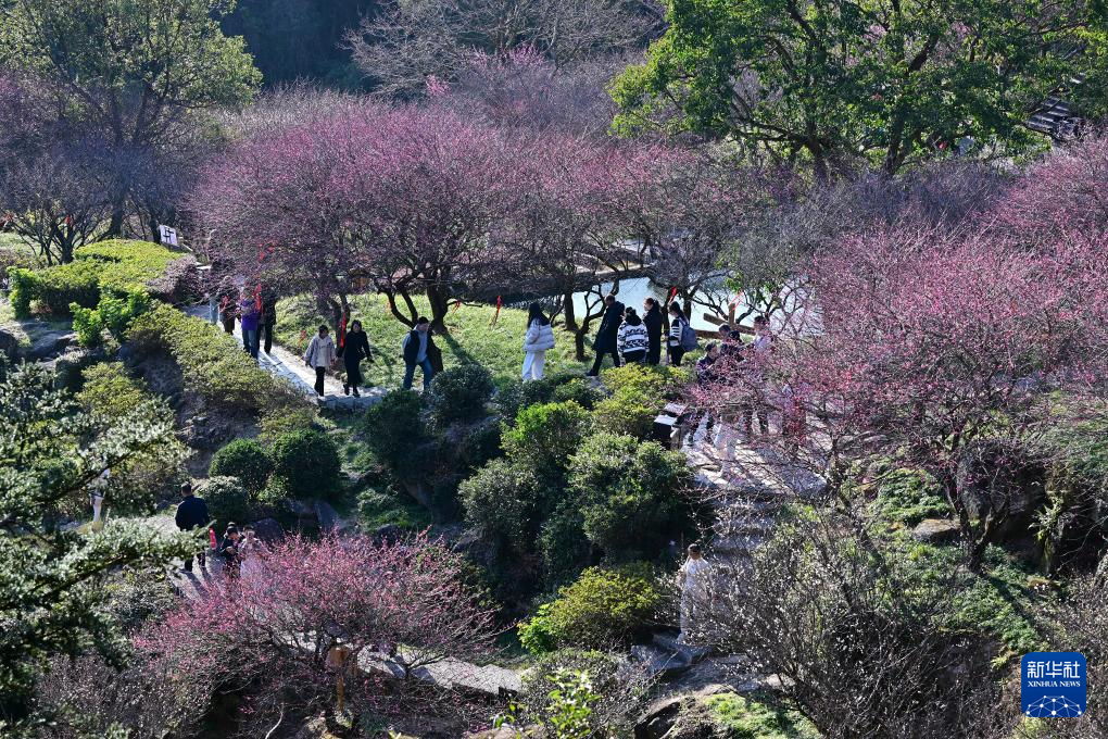 新春时节,福州鼓山梅里景区梅花次第盛开,吸引游人前来赏花观景。
