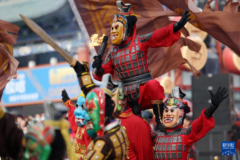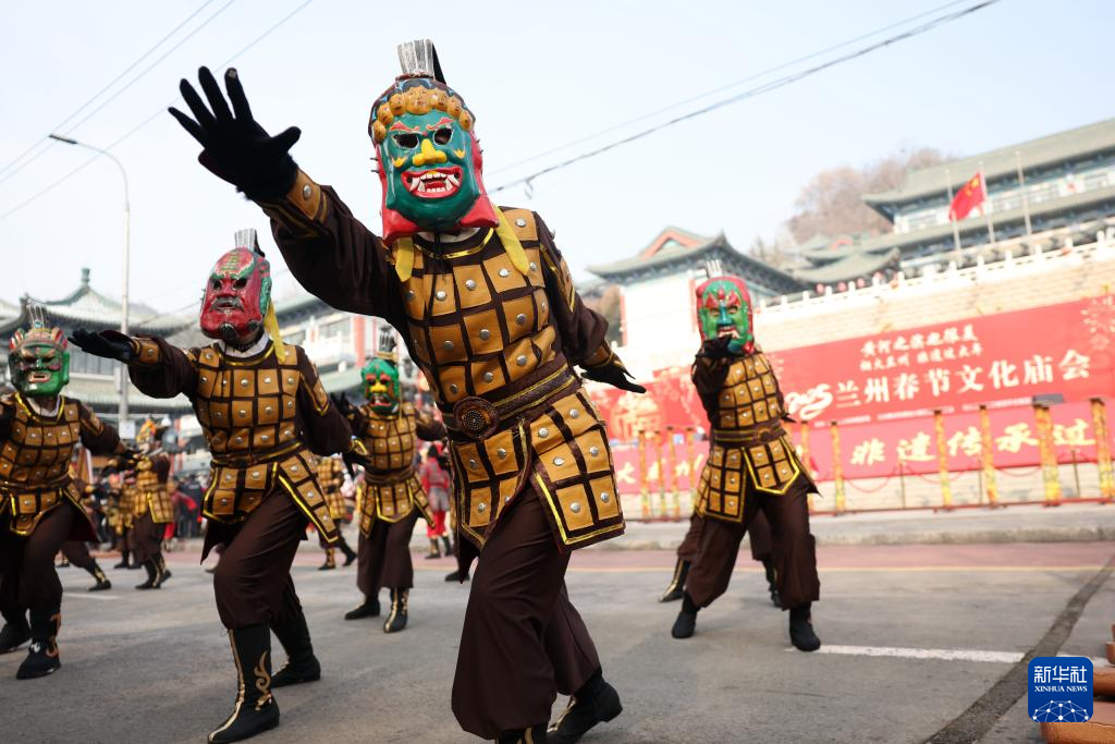 当日,以“烟火兰州闹新春 非遗传承过大年”为主题的甘肃省兰州市2025年春节文化庙会在兰州金城关举行。庙会期间,兰州太平鼓、西固军傩舞、舞龙舞狮、踩高跷、秦腔折子戏等上百场非遗民俗文化活动为市民和游客送上年味浓浓的文化大餐。