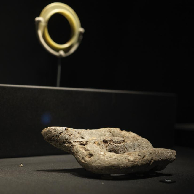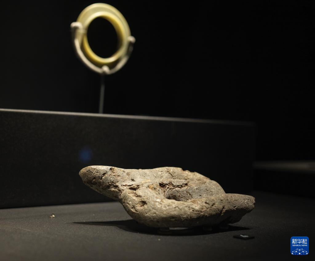三星堆博物馆展出商代石蛇展品(1月23日摄)。