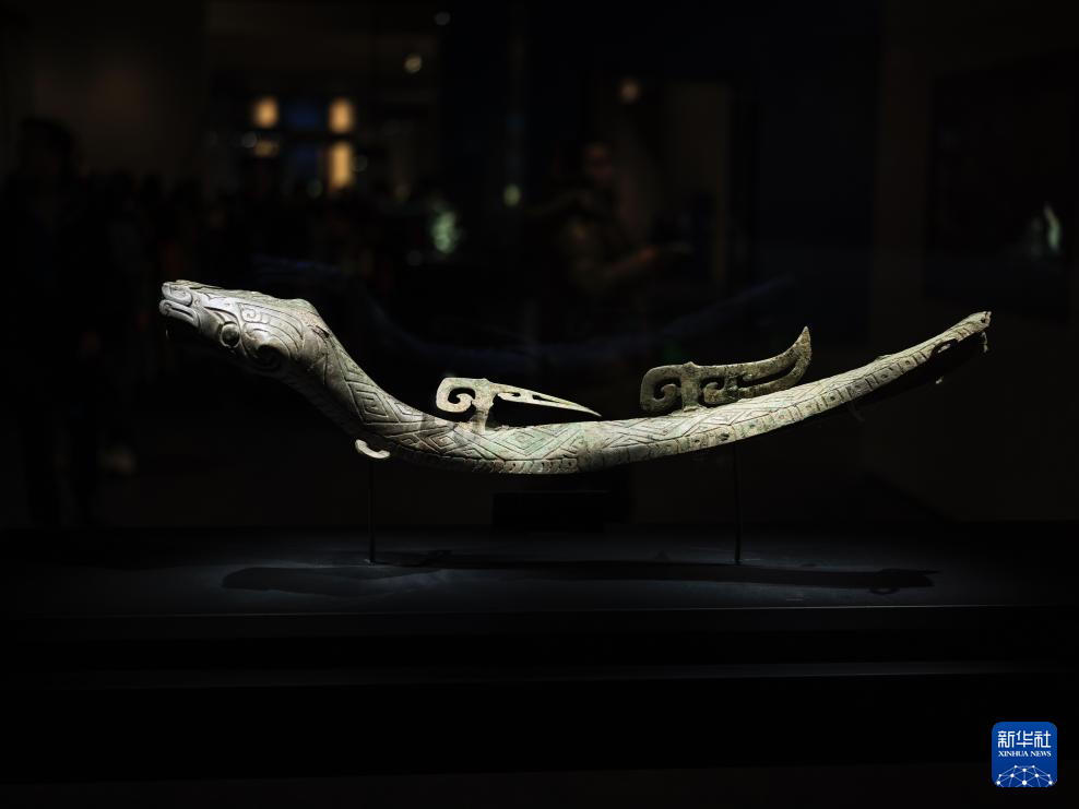 三星堆博物馆展出的商代青铜蛇展品(1月23日摄)。