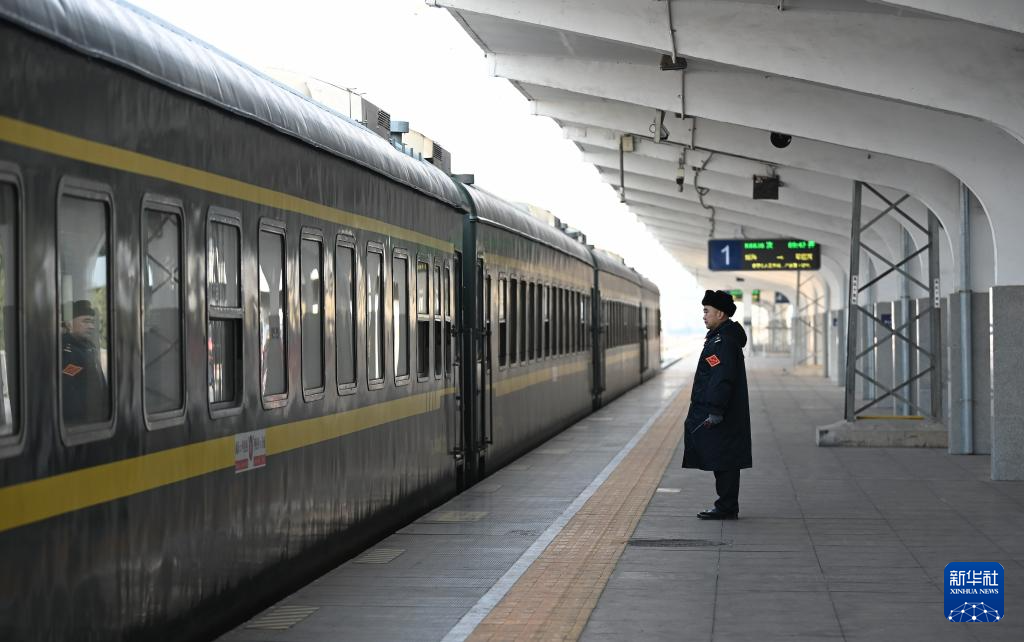 1月30日,在山东滕州站,工作人员准备接车。