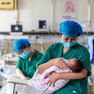 1月29日,河北省唐山市丰润区妇幼保健院产科的护士在配药。