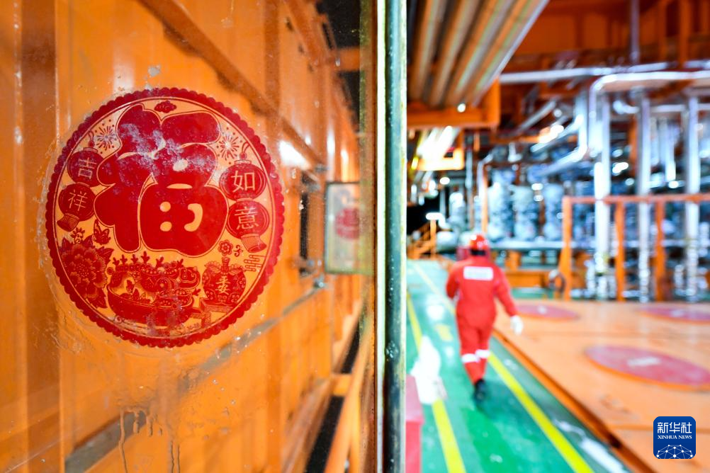 1月30日凌晨,工人在渤海油田海上生产平台巡检。