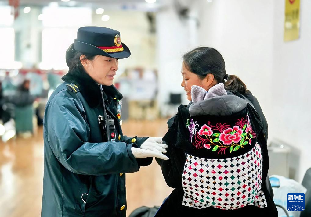 1月29日,国铁武汉局襄阳站客运员穆佟在为旅客服务。
