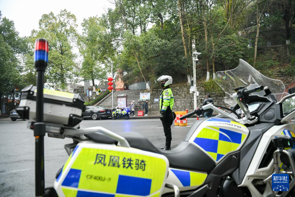 1月30日,在湖南省湘西土家族苗族自治州凤凰县街头,交警在执勤。