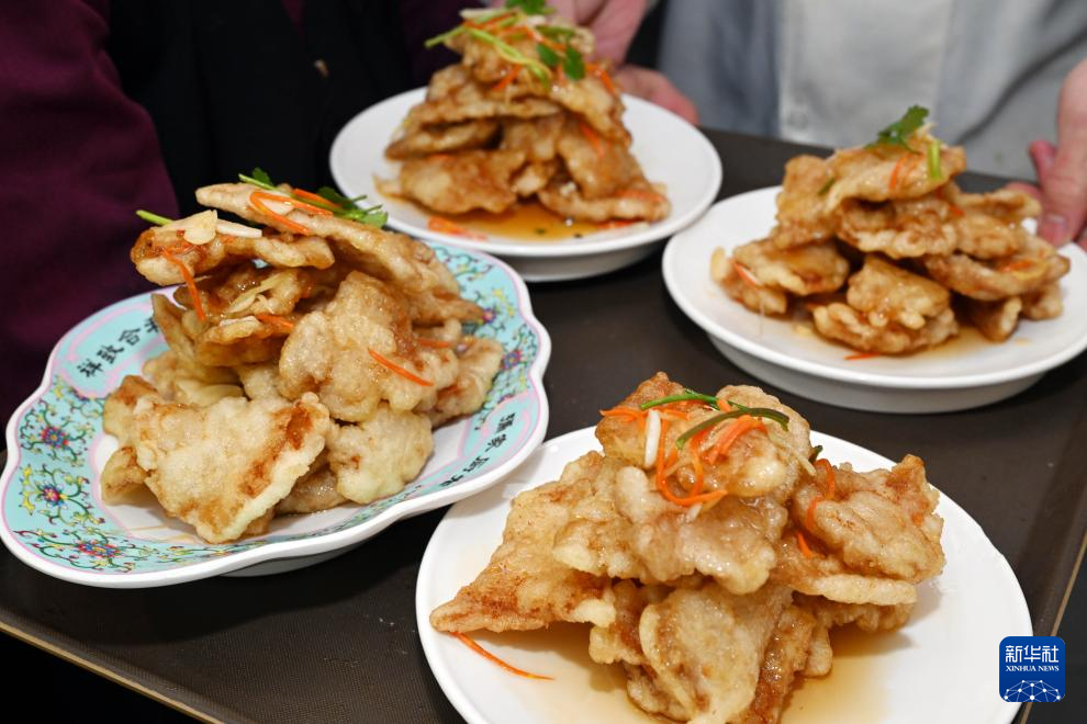这是1月29日在哈尔滨市道里区老厨家中央大街店拍摄的刚出锅的锅包肉。