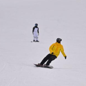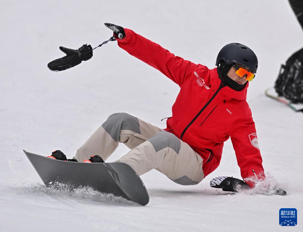 1月31日,滑雪爱好者在羌人谷滑雪场滑雪。