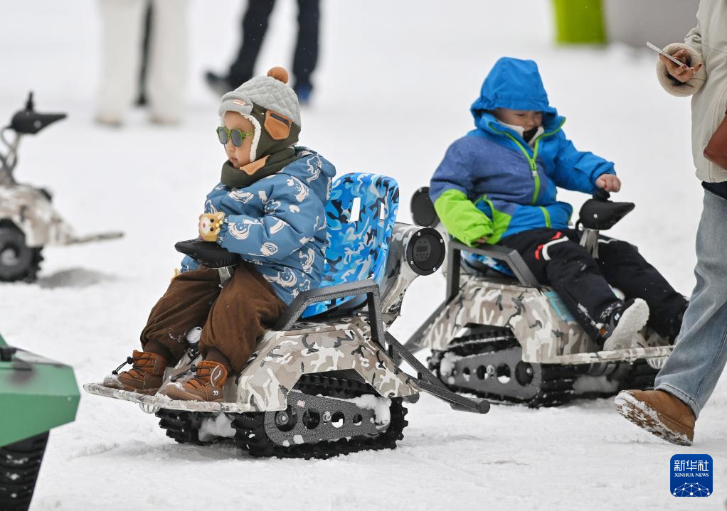 1月31日,小朋友在羌人谷滑雪场游玩。