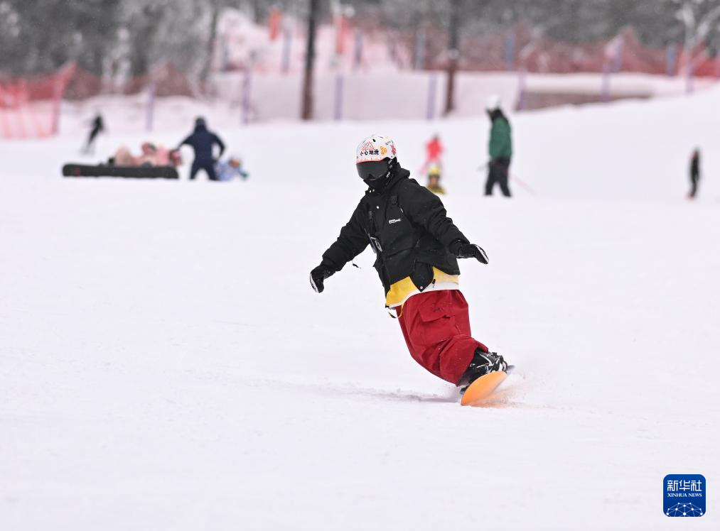 1月31日,滑雪爱好者在羌人谷滑雪场游玩。