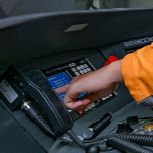 2月1日,在上海虹桥动车运用所,上海电务段工作人员对车载操作终端进行检查和测试。