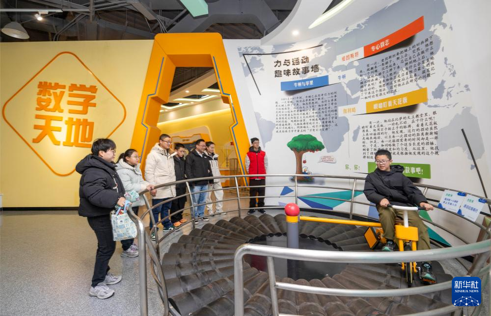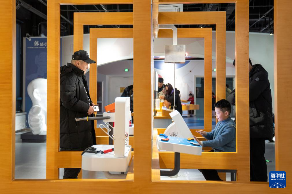 2月1日,人们在安徽省合肥市肥东县科技馆体验科普设备。
