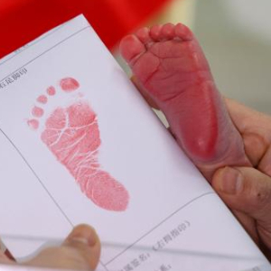 1月29日,在贵州省铜仁市玉屏侗族自治县人民医院新生儿科,医务人员为一名刚出生的“蛇宝宝”留下脚印。