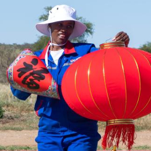 2月1日,在纳米比亚首都国际机场公路项目第三期工程驻地,纳方员工手提灯笼留影。