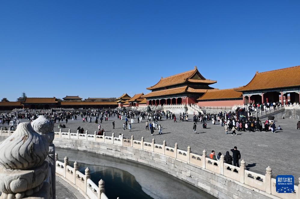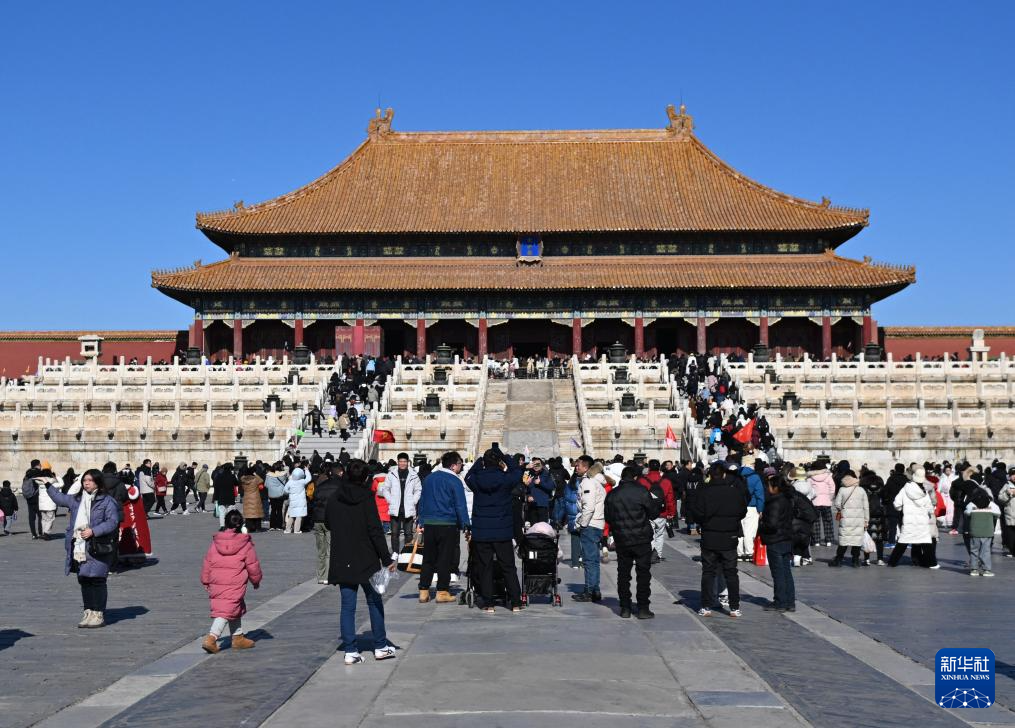 2月2日,游客在位于北京中轴线上的故宫观光游览。