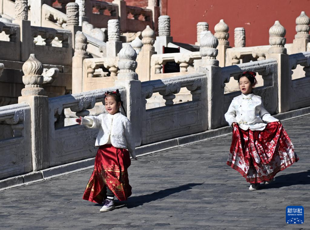 2月2日,小朋友在位于北京中轴线上的故宫玩耍。