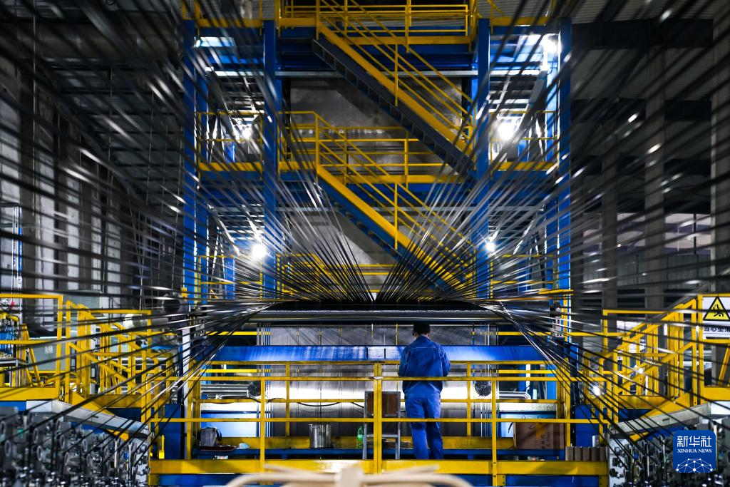 2月2日,工人在吉林化纤集团国兴碳纤维有限公司碳化二车间作业。