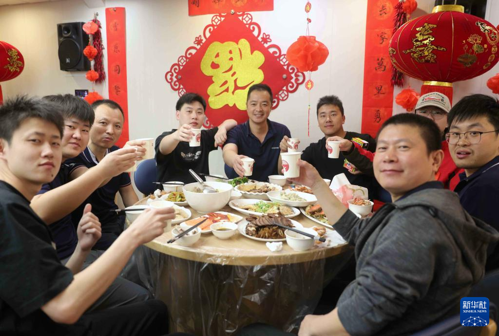 执行中国第41次南极考察任务的“雪龙2”号正在阿蒙森海进行大洋调查。远隔重洋,年味不减,考察队员们一起动手包饺子、一起吃年夜饭、观看“雪龙2”春晚,在地球最南端度过难忘的海上新春。短暂休息后,队员们又投入到紧张的考察工作中。