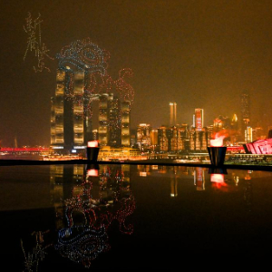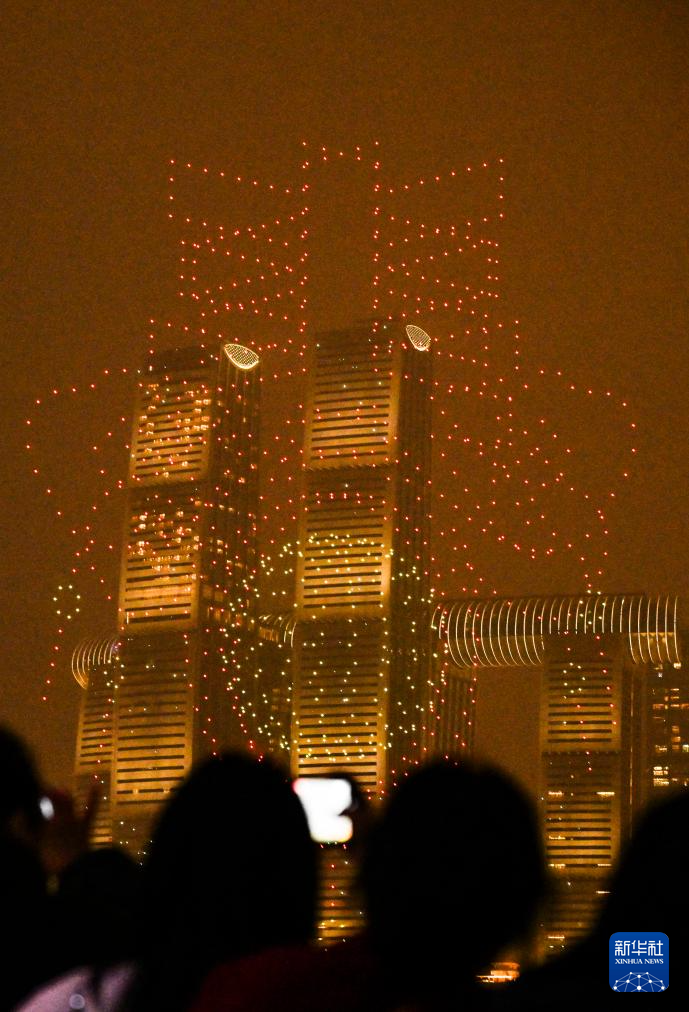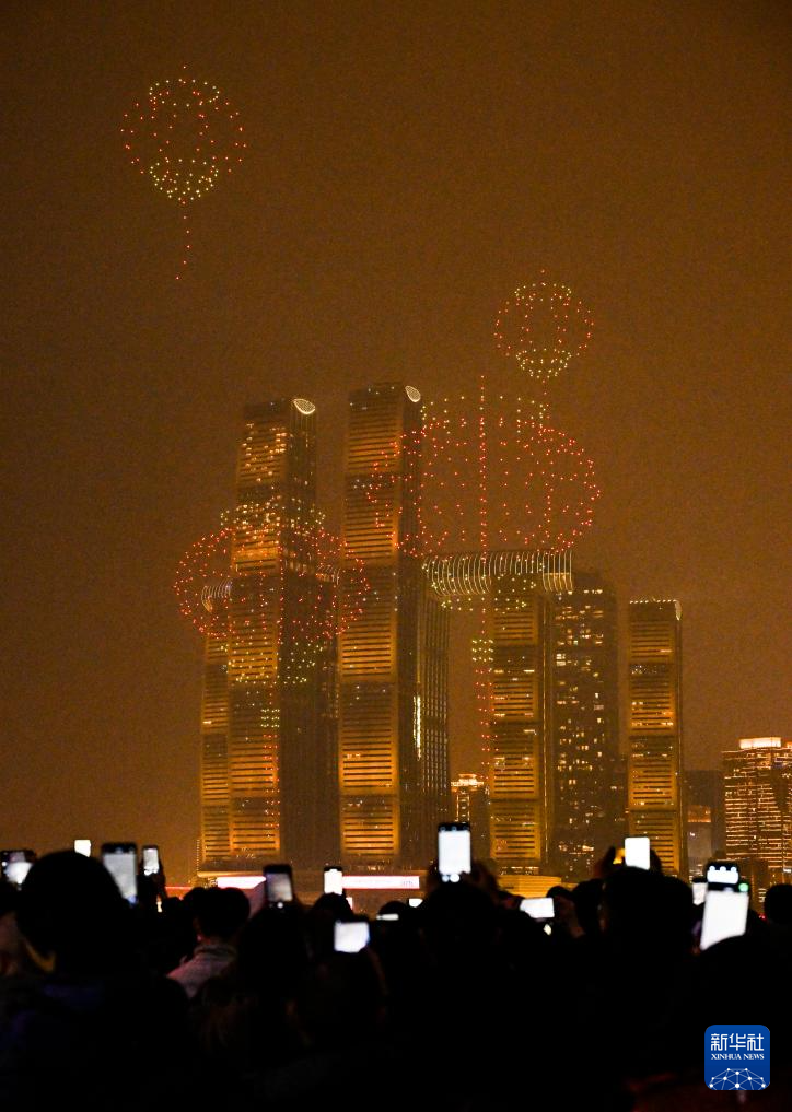 春节期间,多场无人机表演在重庆朝天门长江、嘉陵江两江交汇处精彩上演,为市民和游客带来视觉盛宴。