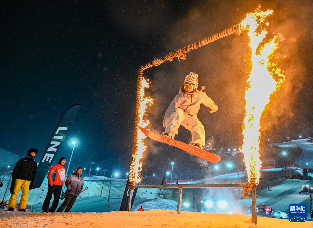 春节假期,在新疆将军山国际滑雪度假区进行了一场新春趣味滑雪公园跳台活动。来自国内外的百余名滑雪公园爱好者在新春之际飞跃跳台、火圈,尽情享受冰雪运动带来的乐趣。