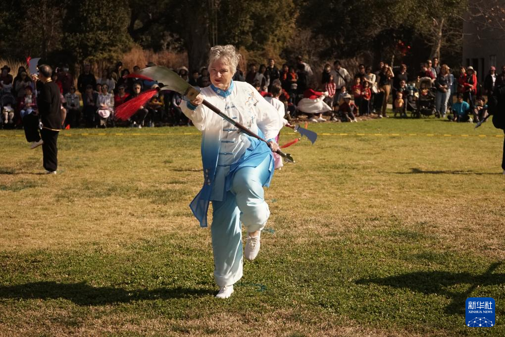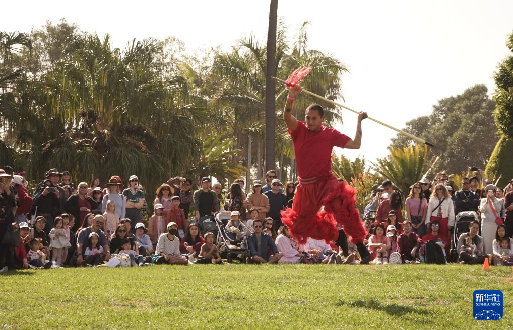 2月1日,人们在美国洛杉矶亨廷顿图书馆举行的春节庆祝活动上观看武术表演。