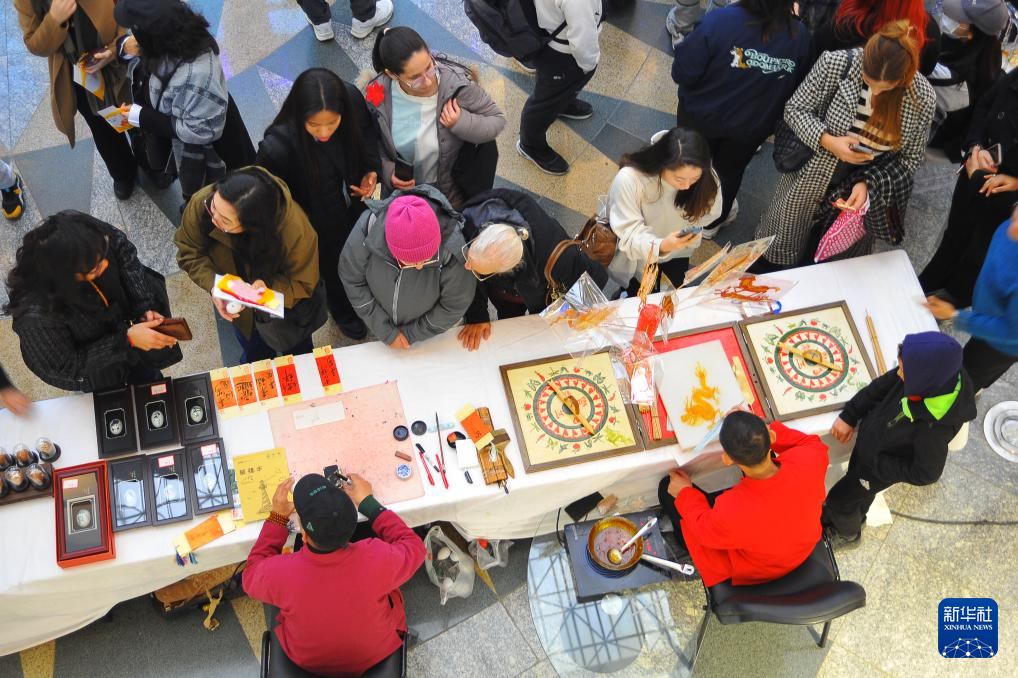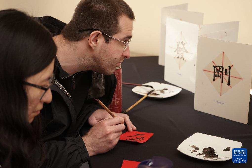 2月1日,人们在美国洛杉矶亨廷顿图书馆举行的春节庆祝活动上学习中国书法。