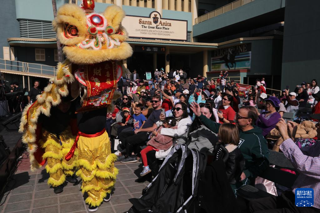 2月1日, 演员在美国阿卡迪亚市举行的春节庆祝活动上表演舞狮。