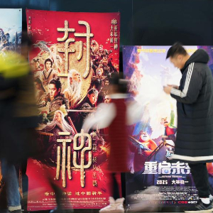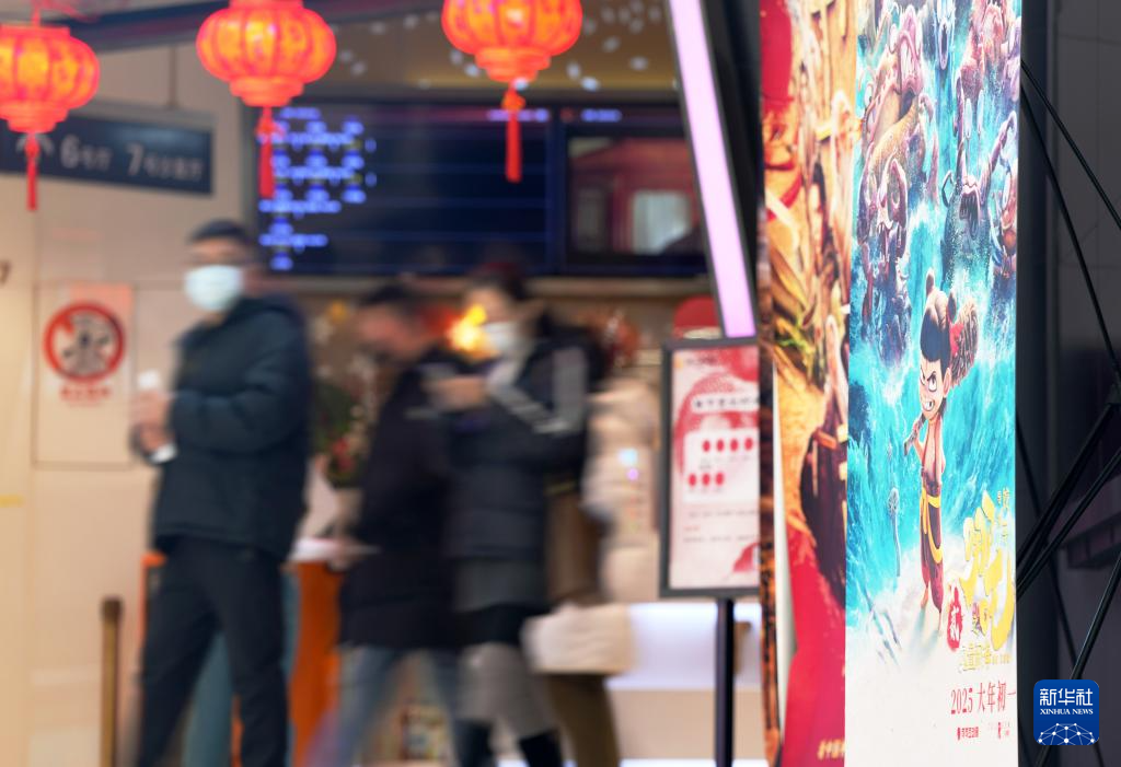 2月4日,在沈阳一家影院,观众从海报前经过。