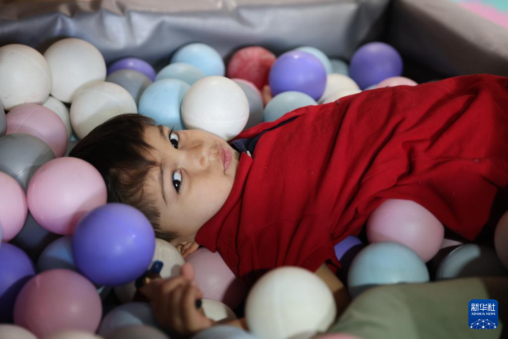 2月2日,在墨西哥奇瓦瓦州华雷斯城的一处移民收容所,一名孩子在玩耍。