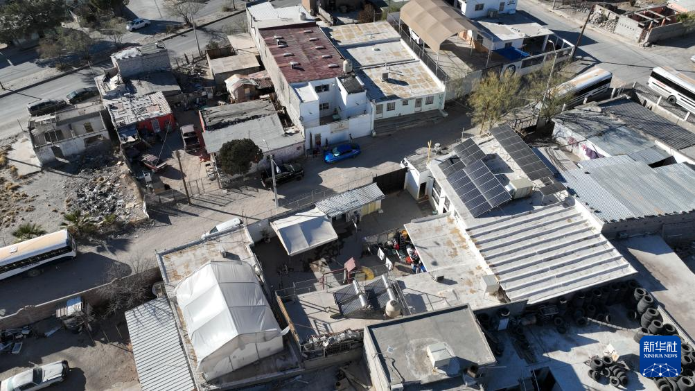这是2月2日在墨西哥奇瓦瓦州华雷斯城拍摄的一处移民收容所(无人机照片)。
